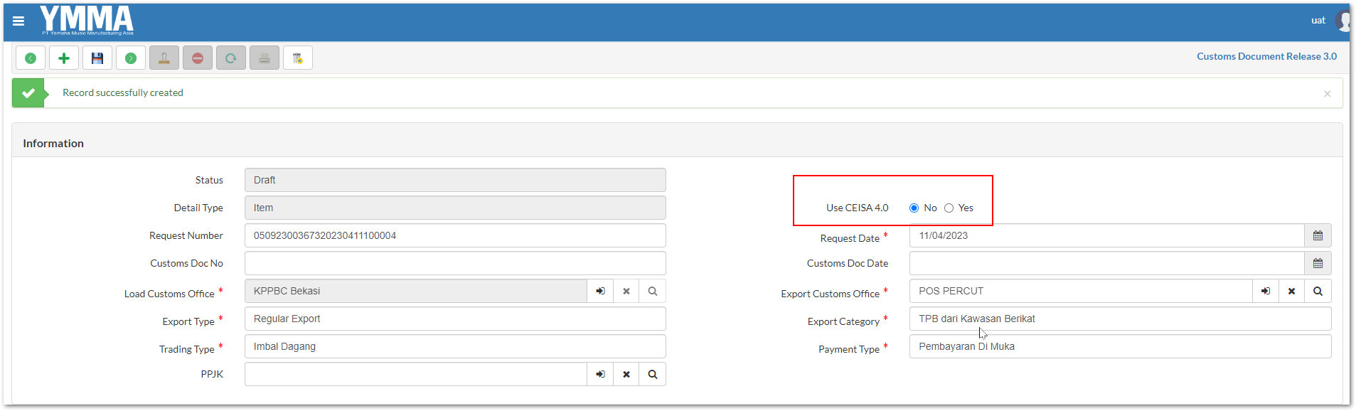 Rubah kolom Use CEISA 4.0 menjadi Yes, kemudian lanjutkan untuk mengisi semua informasi header tambahan lainnya lalu klik Save. Cek ulang seluruh kolom dan jika sudah yakin benar silahkan klik Submit