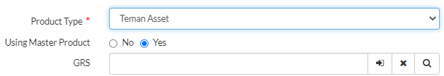Untuk Product Type Asset, Indirect & Teman Asset, akan diminta untuk memilih nomor GRS